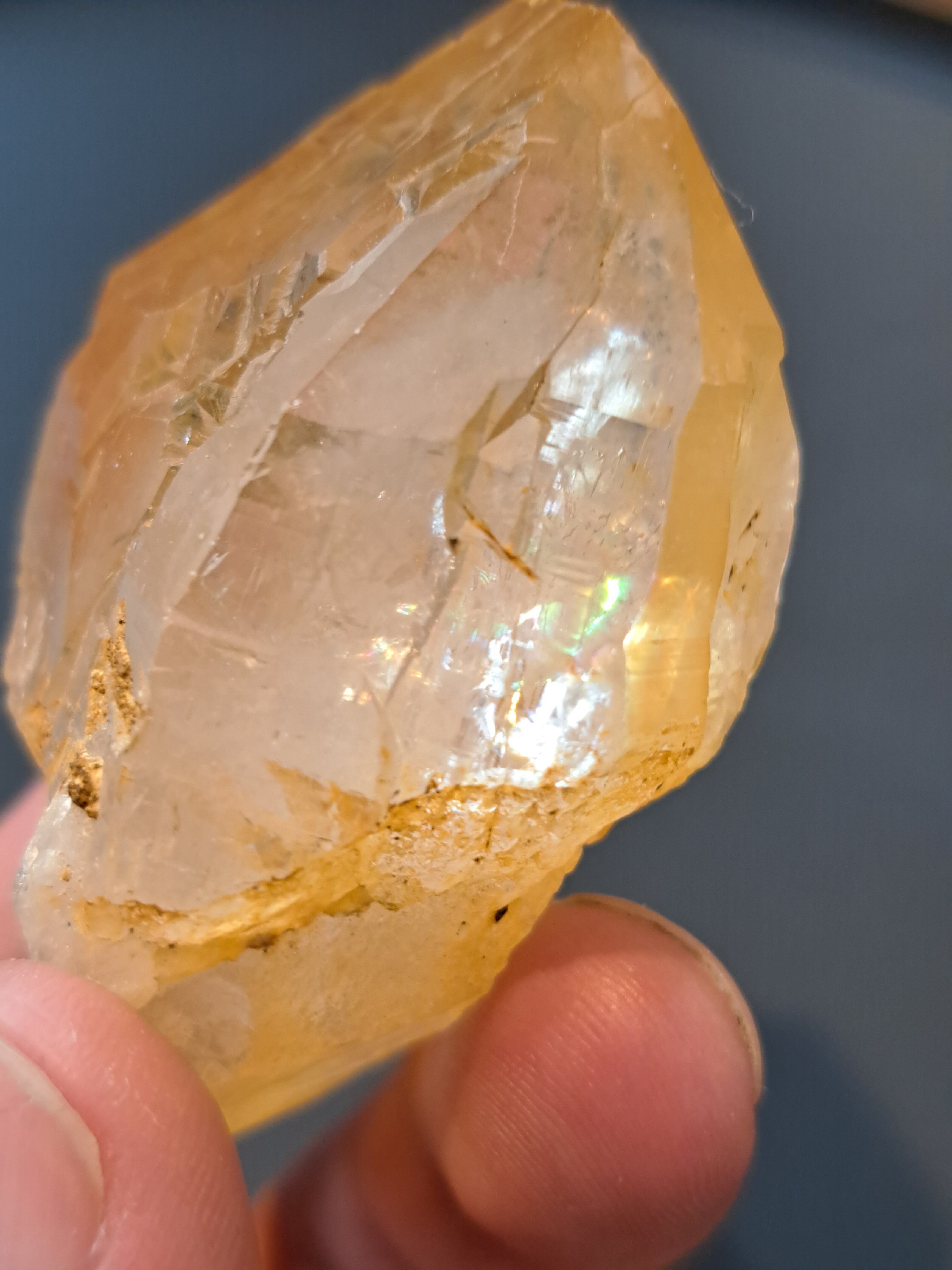 内側のクラックに虹がはっきりと写っており